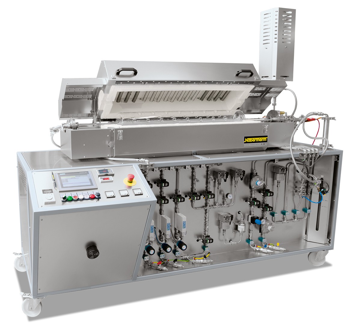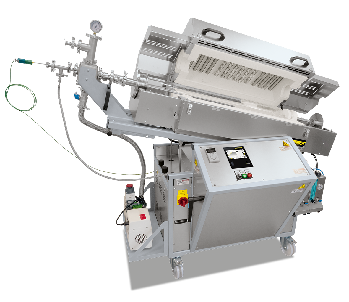 - Rotary tube furnace assembled on base with integrated switchgear and controller, incl. transport casters