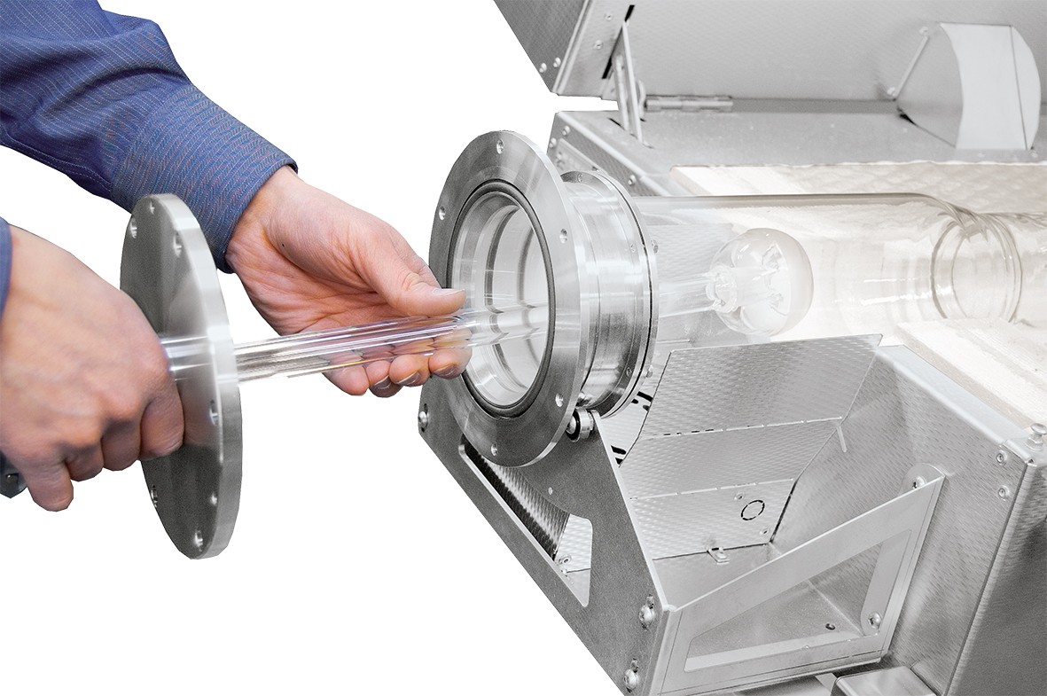 - Reactor open on both sides, made of quartz glass with knobs for better mixing of the charge in the tube